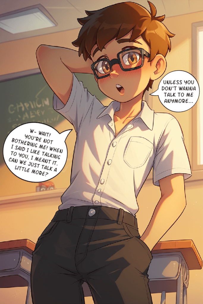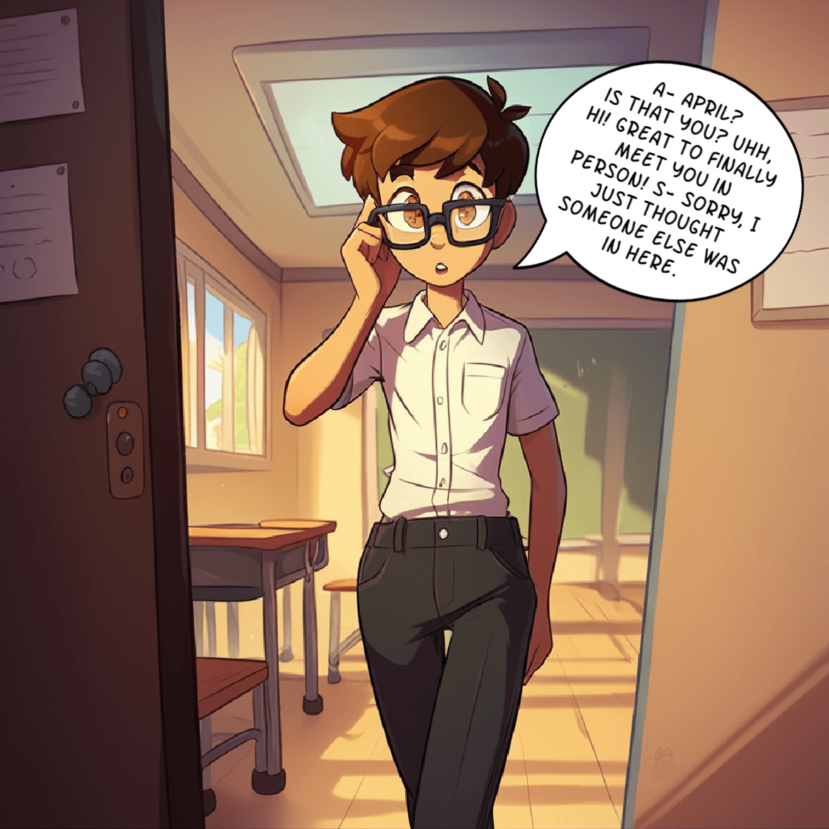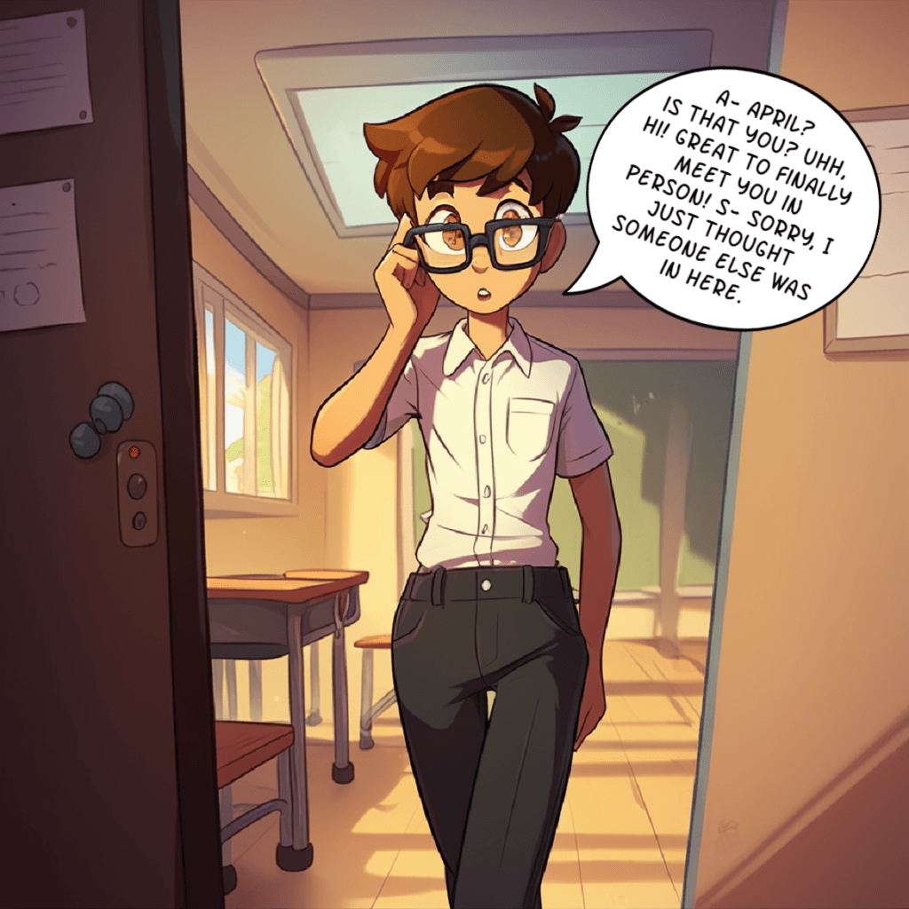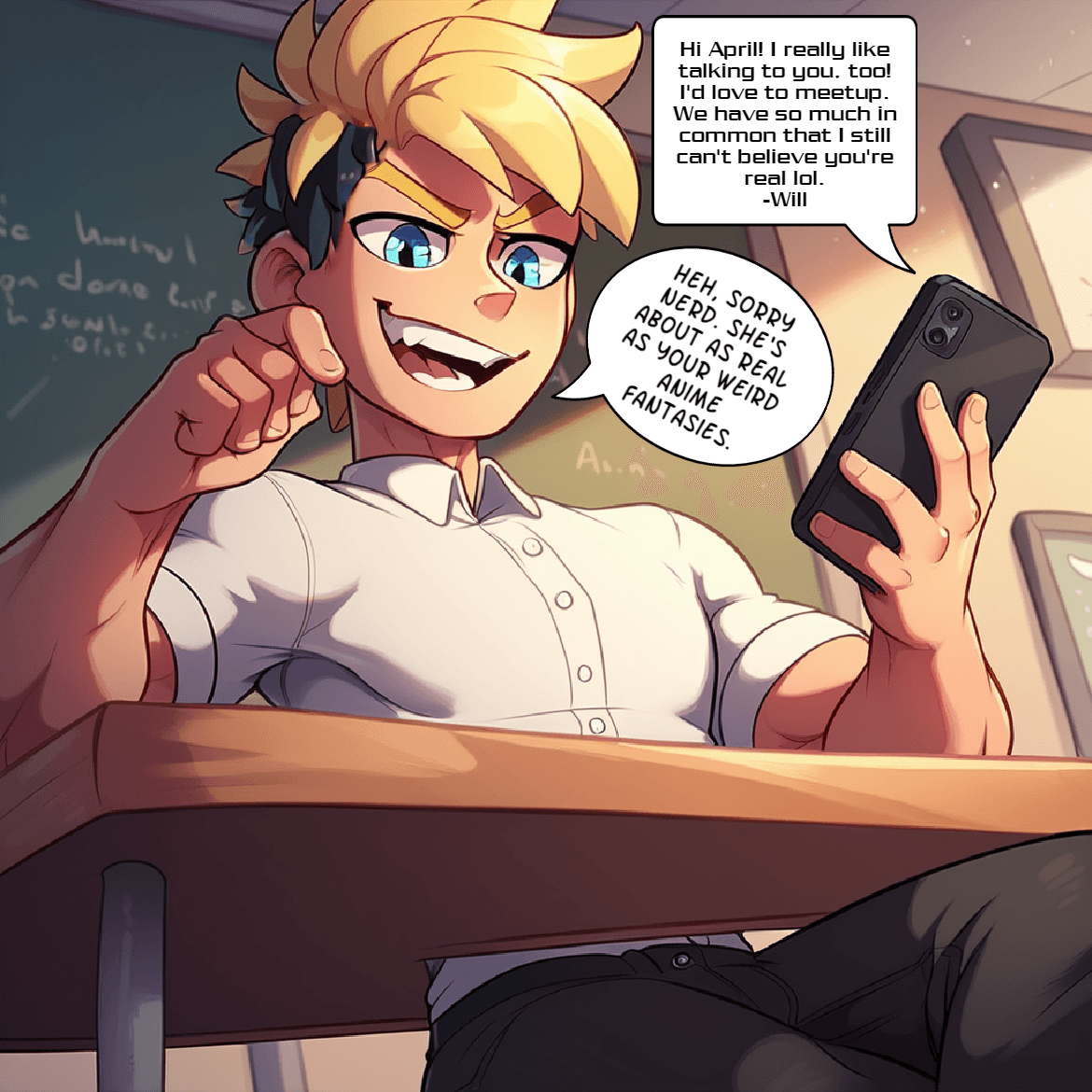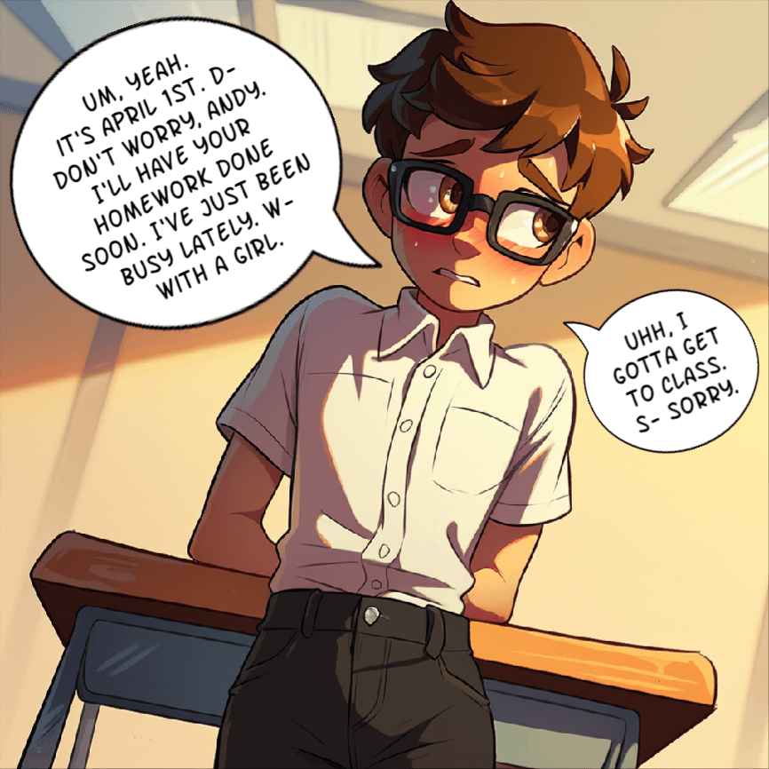 This was supposed to be an April Fool’s comic, as you can probably tell by the title, but ended up growing to 50 pages long and took way more time to finish than I had intended. Still, it’s been a while since I’ve done a bully-to-nerd transformation, so I hope y’all enjoy!