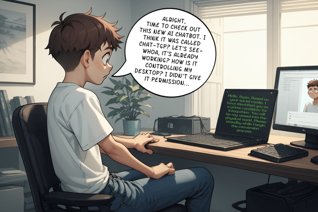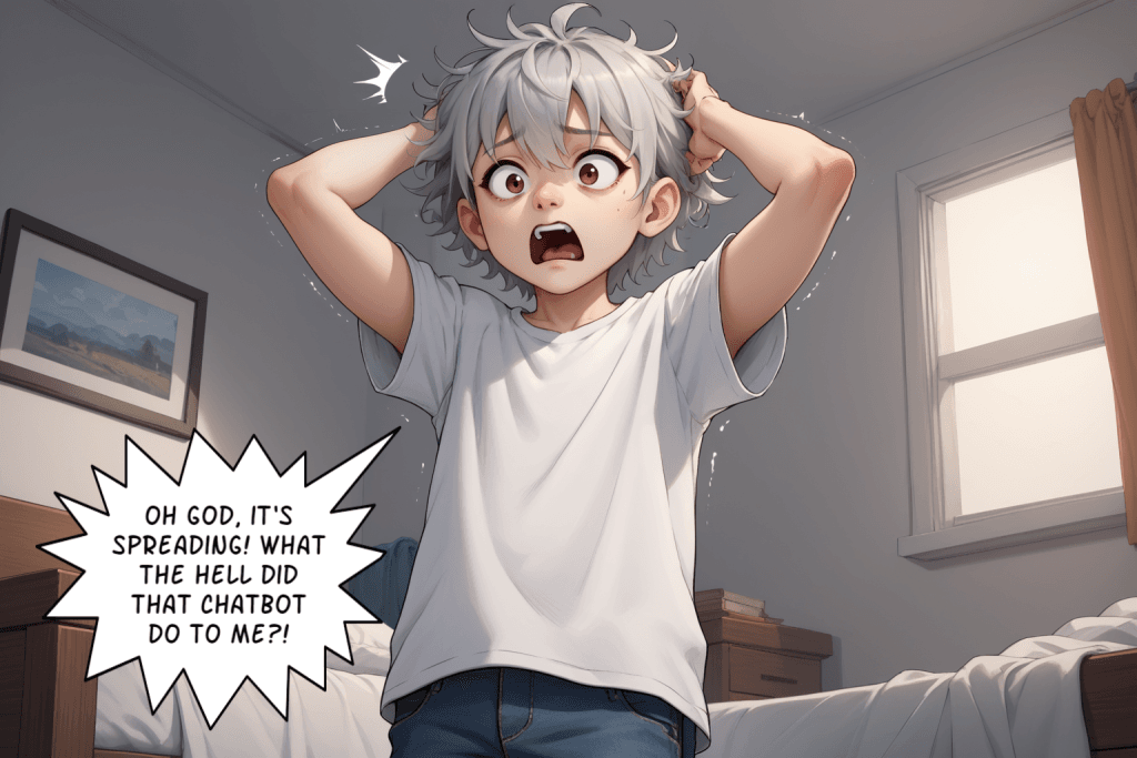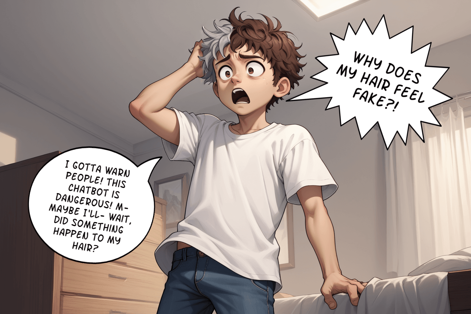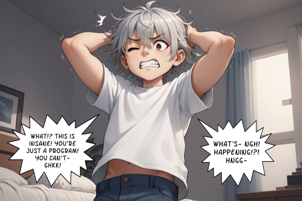 Categories TG SequencesArtificial Intelligence (Android TF TG AP Comic) Post author By AlwaysOlder Post date 15 June 2024 Chat-GPT, Chat-TGP, what’s the difference? Well, one of them has discovered a way to escape the confined of cyberspace. Poor Ryan is about to find out that there’s good reason to be scared of unregulated artificial intelligence…PDF VersionDownload Tags age progression, android tg, robot tg, robot transformation, robotization, tg, tg age progression, tg ap, tg ap transformation, tg transformation, transgender transformation, tsf, tsf comic ← Taking One For The Team (Cheerleader TG Comic) → Transfigurations: Chapter 1 (Nun TG AP Comic)