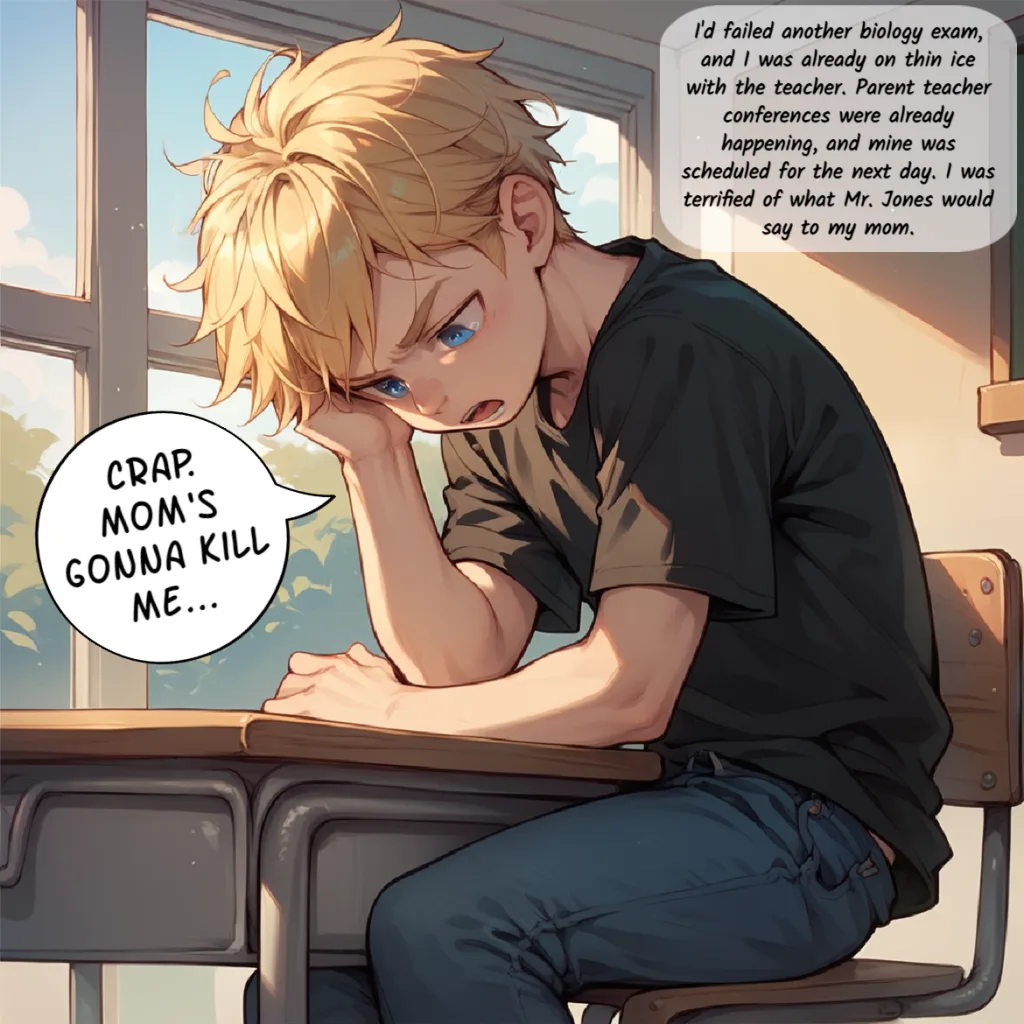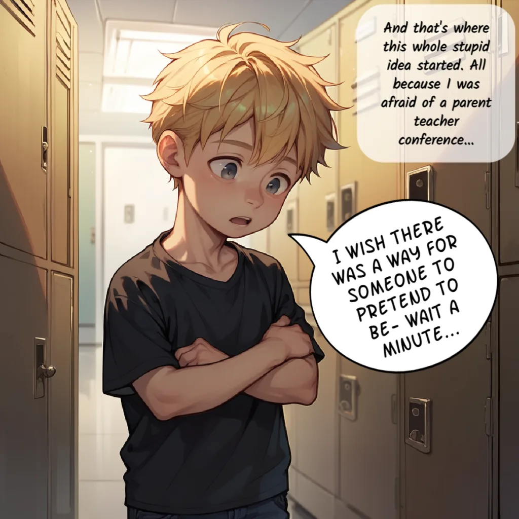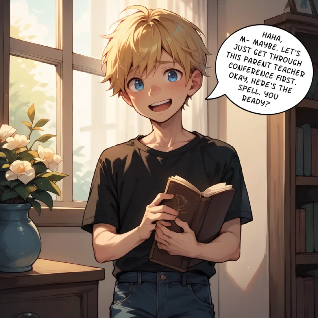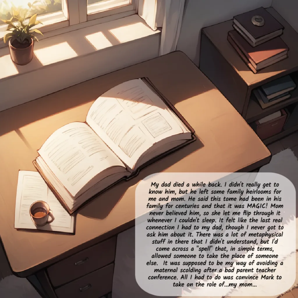 Kyle is failing his biology class and has a parent-teacher conference tomorrow. Not wanting his mom to know how badly he’s doing in school, he hatches a wild plan involving an old book that may or may not be magical. He recruits his best friend, Mark, to impersonate his mom for the day. Mark, always one to help his friend, agrees thinking it’ll be over quick. However, he quickly learns with age comes…other things.