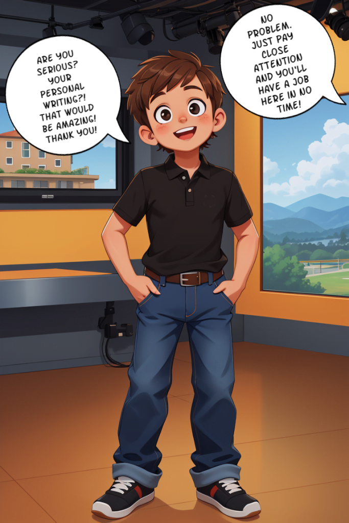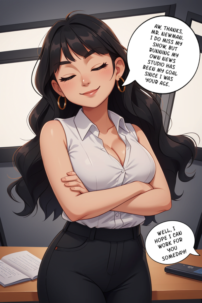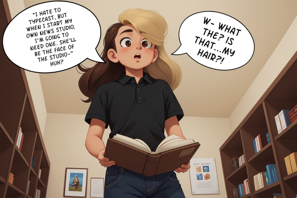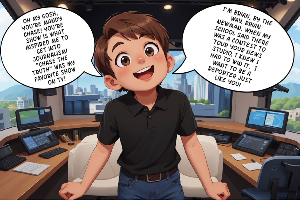 Brian wants to be a reporter when he grows up, so he’s ecstatic when he wins a school contest to visit the new news studio owned by his favorite reporter, Mandy Chase. He tells his idol that it’s his dream to work in her studio someday, but he’s about to learn that Mandy has a way of speeding up the hiring process. After all, you can’t run a news studio without a lead reporter…