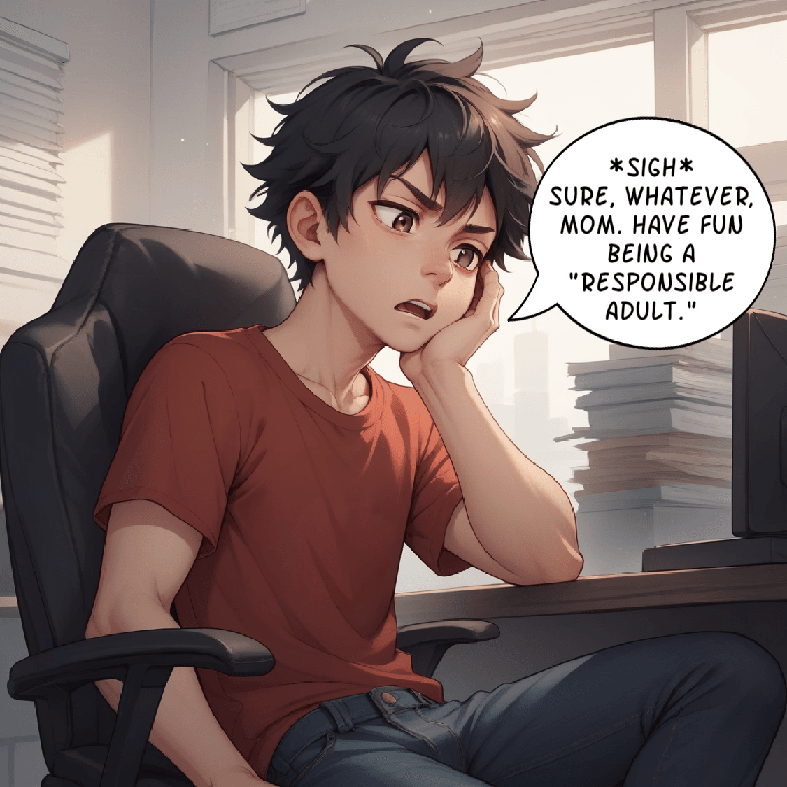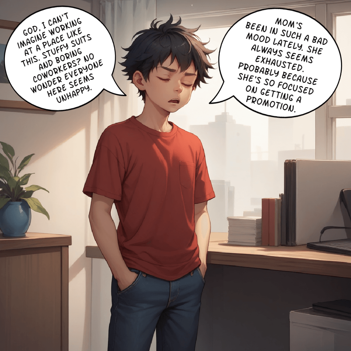 Tim is stuck at his mom’s office after getting suspended for skipping too much class. His mom is already stressed from a busy workplace and simply being a single mom, but today is especially rough for her since her new boss is supposed to be arriving at the office. While waiting alone in his mom’s office, Tim suddenly undergoes a spontaneous transformation that changes both of their lives forever…
