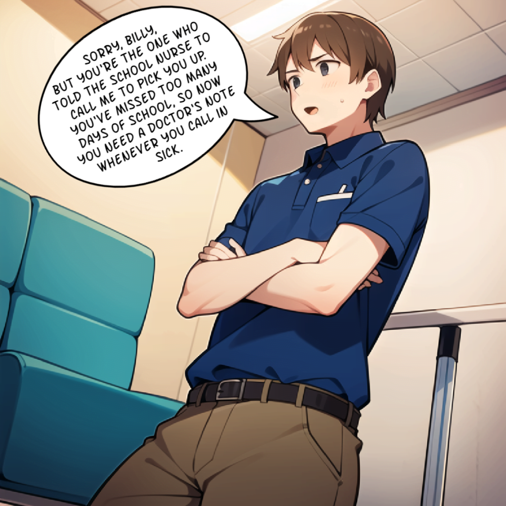 Billy hates the doctor, but after calling in sick and skipping class so often, his school now requires him to get a doctor’s note whenever he wants to miss class. After his dad forces him to see the doctor after trying to get out of school again, the boy nervously paces around the doctor’s office and wishes he could simply write his own doctor’s notes…