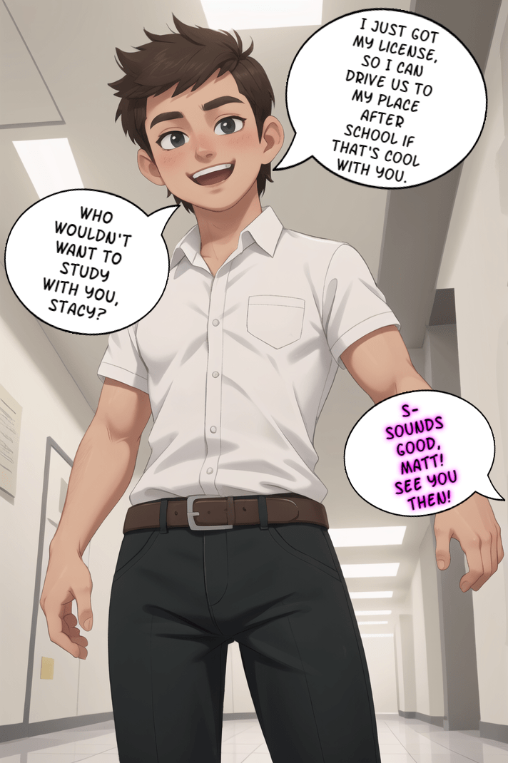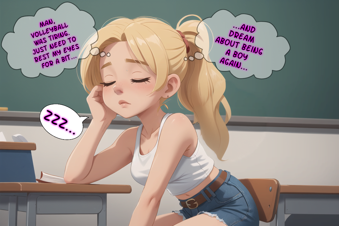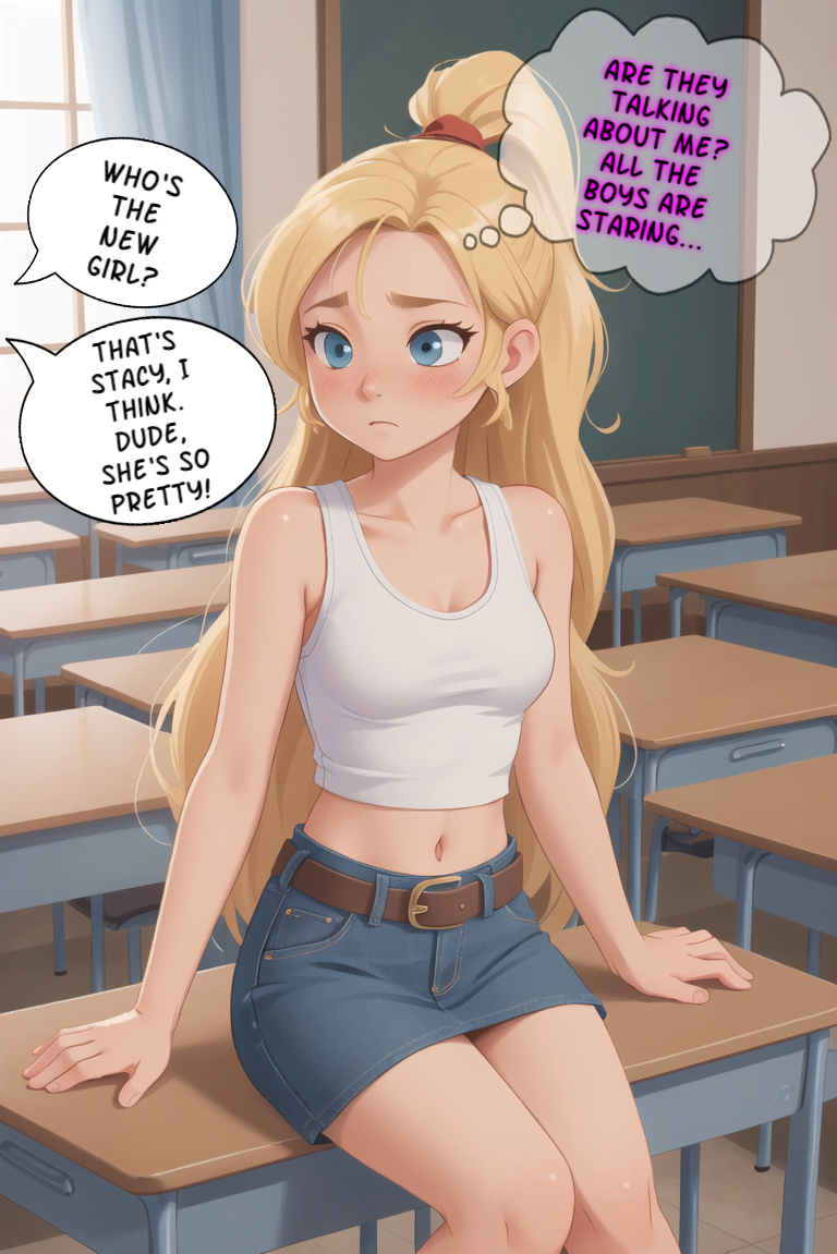 Stacy, formerly Steve, spends her first day in school as a girl and comes to learn some intimate truths about her new self…