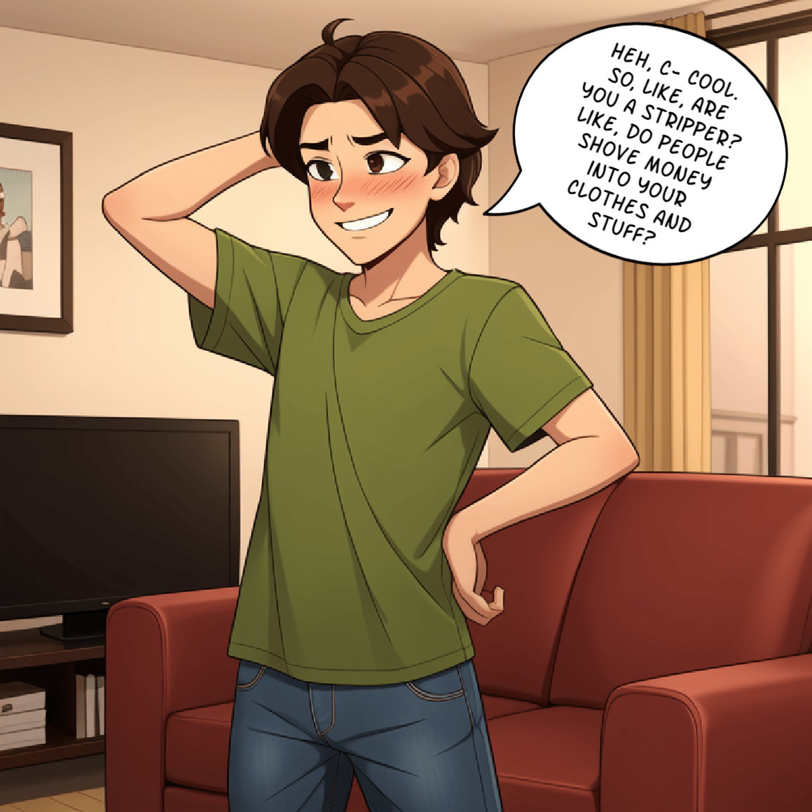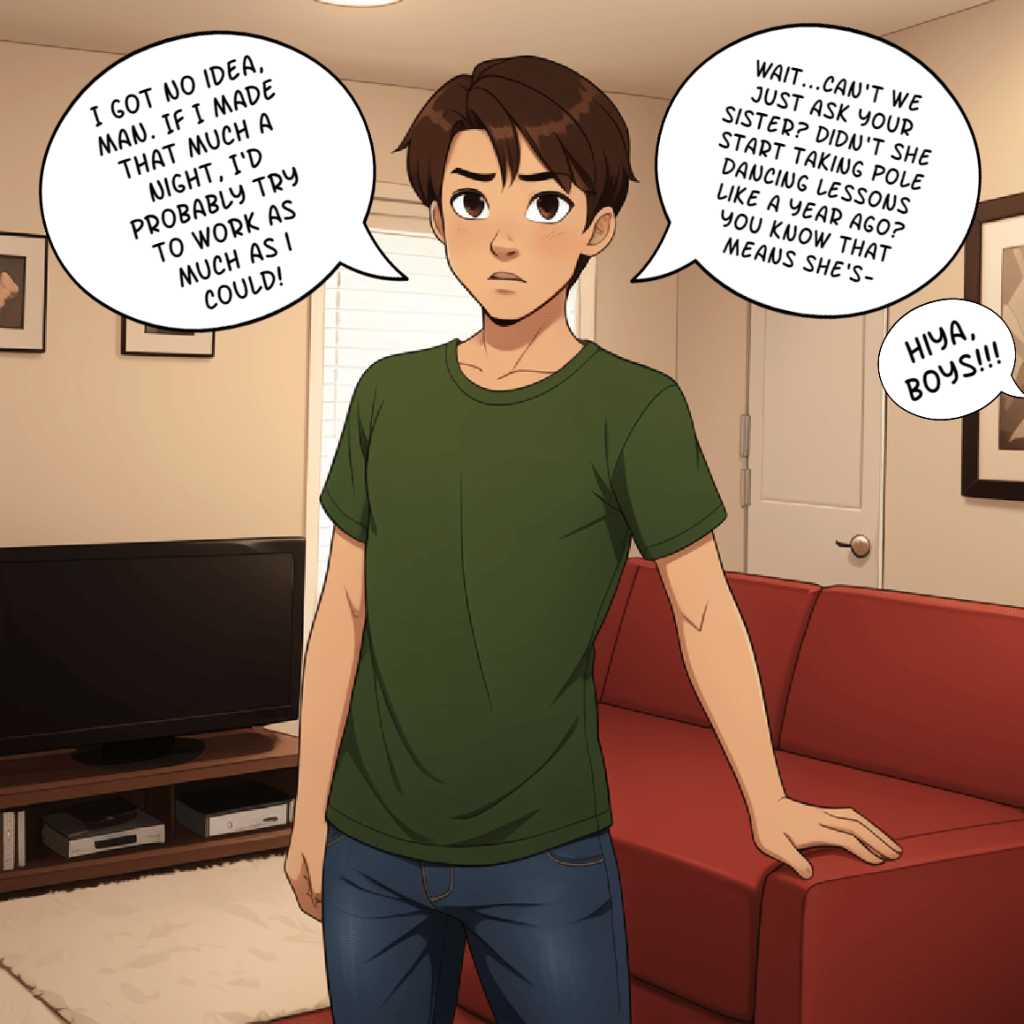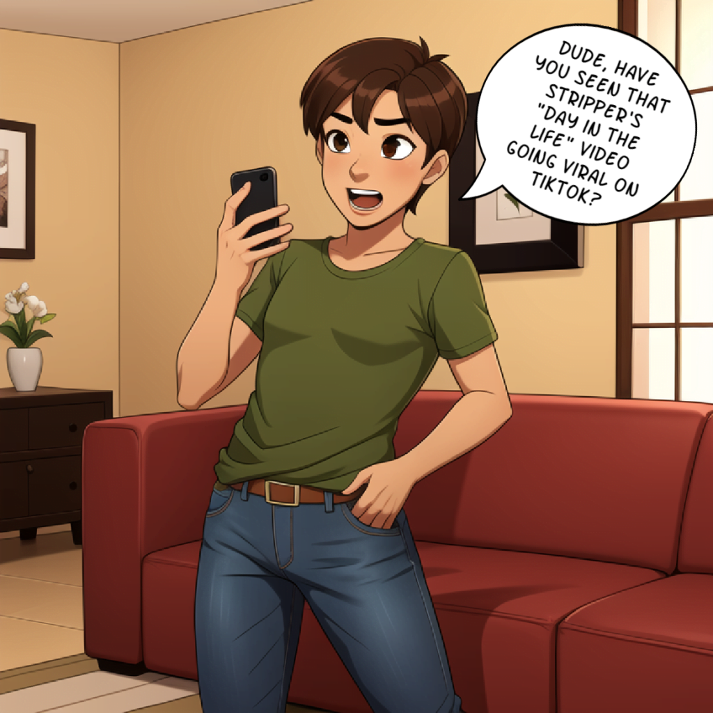 Aaron and Terry are best friends hanging out one day after high school. Aaron sees a TikTok about strippers and decides to pester Terry’s older sister about why she started stripping. Fed up with Aaron’s condescending line of questioning, she leaves to get one of her friends to cast a life changing hex on the ignorant teen. Now, Aaron will have to perform his own strip show if he ever wants to become a boy again…