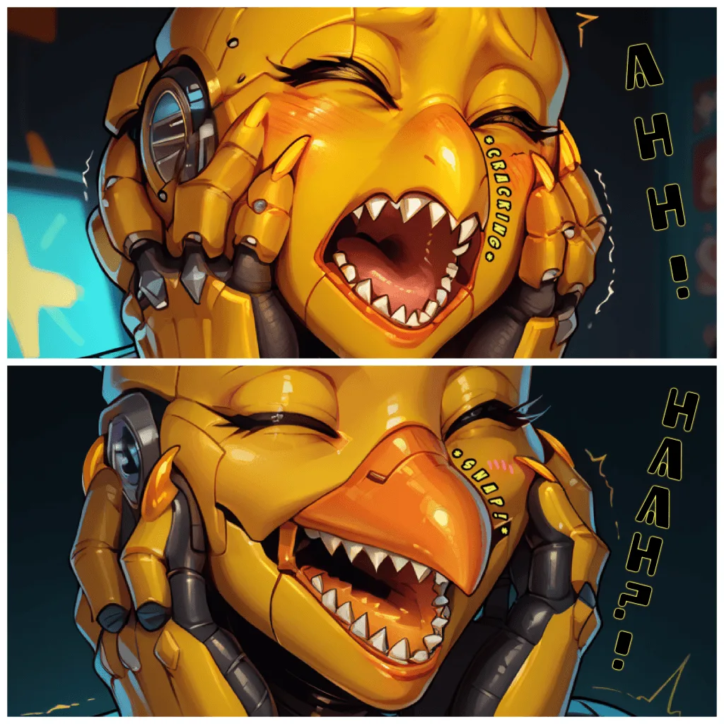Woo! More robotization! This one is very clearly inspired by FNAF, but I wanted to put my own spin on the concept since I haven’t played one of those games since the 4th installment and the lore in that series is insanely expansive now. Hope y’all enjoy this transformation into a “Not Chica” animatronic!