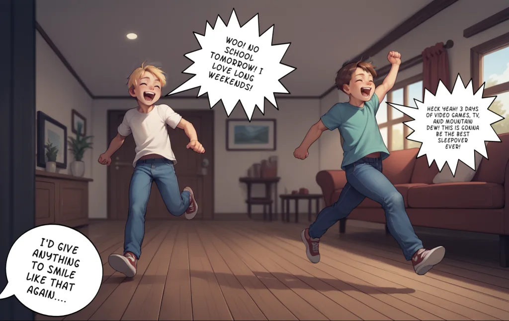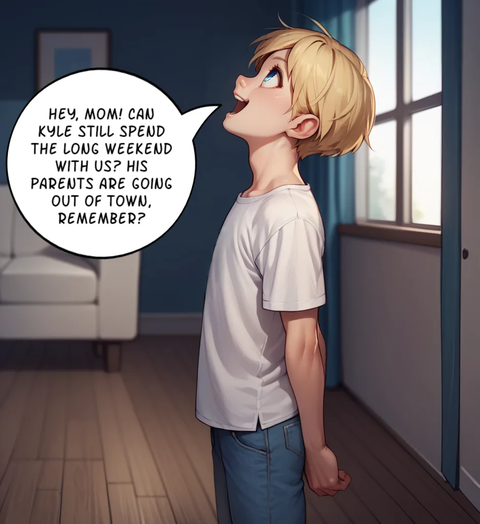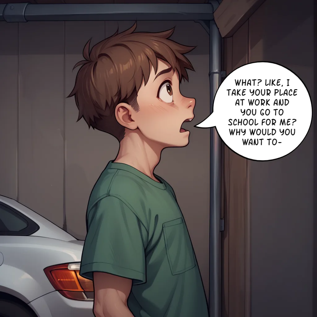 Laura Wilson is burnt out on life, so when her best friend loans her a spell book, she spends the night drinking wine and reading through it for a solution. Her husband is out of town and her son’s best friend is staying over for the 3-day weekend. Seeing the boys hang out gets her jealous of her son’s friend being able to spend more time with her son, so she drunkenly decided to try out a body swapping spell…