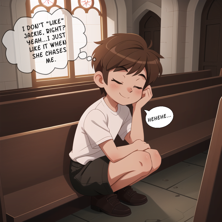 Ben doesn’t want to admit it, but he likes Jackie. He’ll annoy her just so she pays attention to him, and today he stole one of her rings to get her to chase him around the park. He finds a hiding spot in the local church, but just as Jackie is about to find him and unleash her wrath, she hears church bells beginning to ring. The pair have no idea just how close they’re about to become…