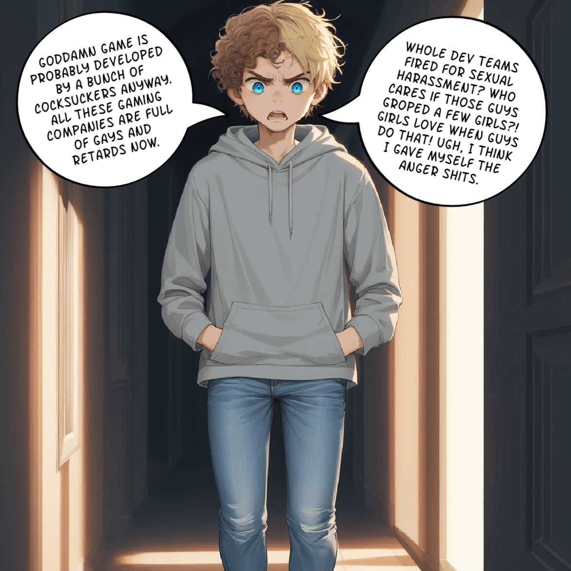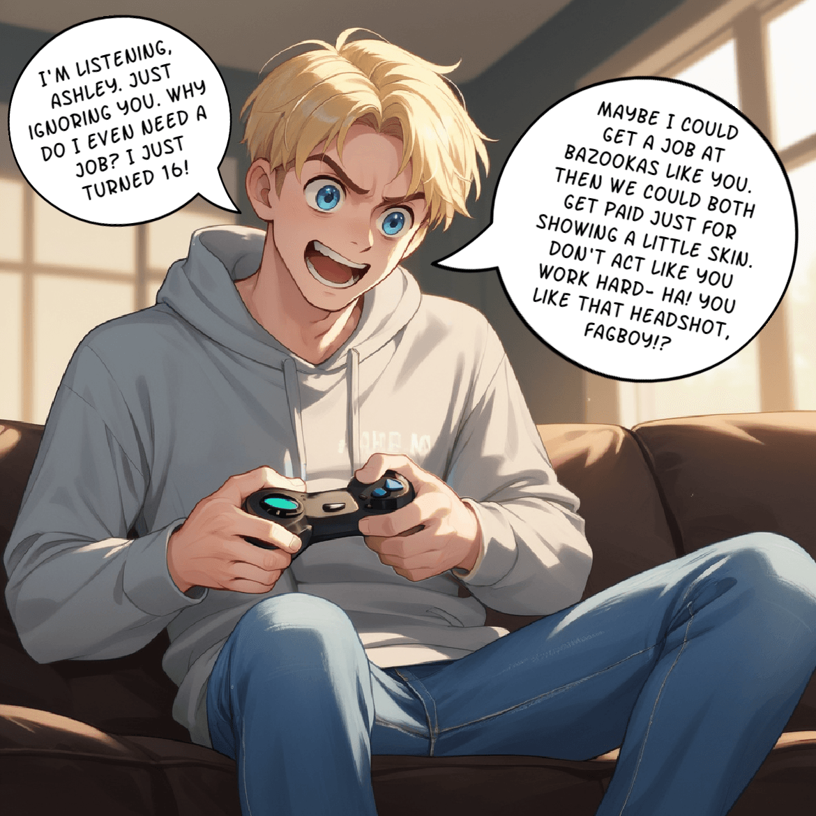 Wesley is an angry, foul mouthed 16 year old who refuses to get a job despite the pleas of his family. After mocking his sister for working at the “restaurant with slutty waitresses” between shouting derogatory slurs online, he feels an odd sensation spread through him. He doesn’t realize just how much he’s about to learn about work, women, and even himself…