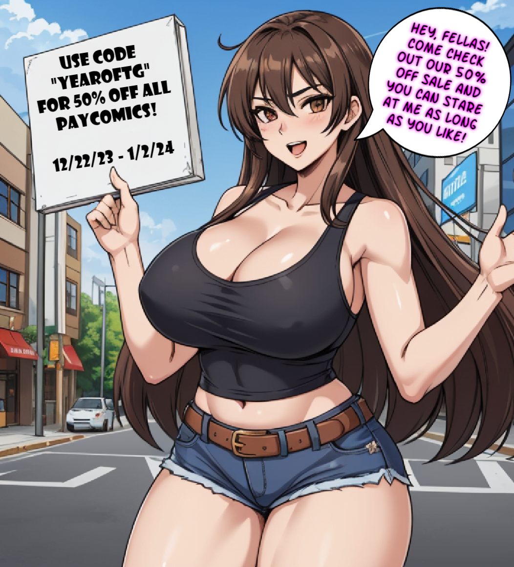 I’m having a year end paycomic sale! From now until Jan. 2nd 2024, you can use code “YEAROFTG” to get 50% off ALL PAYCOMICS in my store!